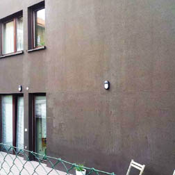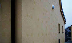 Zcela jinou příčinu nestejnoměrného zbarvení fasády měly další případy. Na posuzovaných objektech se až po několika letech od realizace začaly objevovat menší či větší neohraničené plochy s výrazně světlejším zbarvením než okolní odstín.