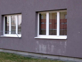 Za jednu z nejčastějších příčin tvorby světle zbarvených ploch oproti okolnímu odstínu fasády lze označit nedodržení stanoveného technologického postupu při aplikaci výztužné vrstvy a omítky nebo jejich aplikaci při nevhodných klimatických podmínkách. U bytového domu na obr. (05 a 06) bylo při podrobném zkoumání postupu stavebních prací zjištěno, že nedošlo při zrání výztužné vrstvy k úplné karbonataci volného hydroxidu vápenatého, což mělo za následek jeho vyluhování z výztužné vrstvy a následnou reakci s oxidem uhličitým. Tím vznikl uhličitan vápenatý, který vytvořil na povrchu omítky světlé zbarvení. Příčinou světlých ploch na fasádě také může být namáhání ještě nevyzrálé fasády náhlými atmosférickými srážkami.
