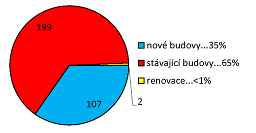 Celkový počet 308 certifikovaných budov v ČR se dělí mezi (obr. 1):