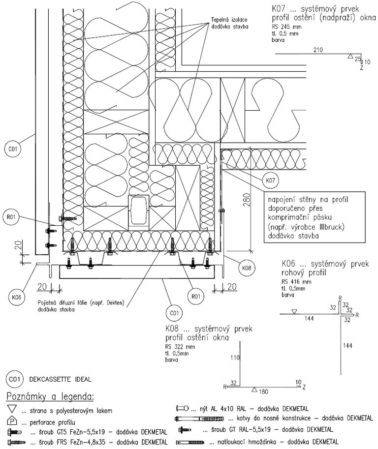Podrobné technické informace, technický list, materiálové a barevné řešení fasádního systému s kazetou DEKCASSETTE IDEAL naleznete ZDE.