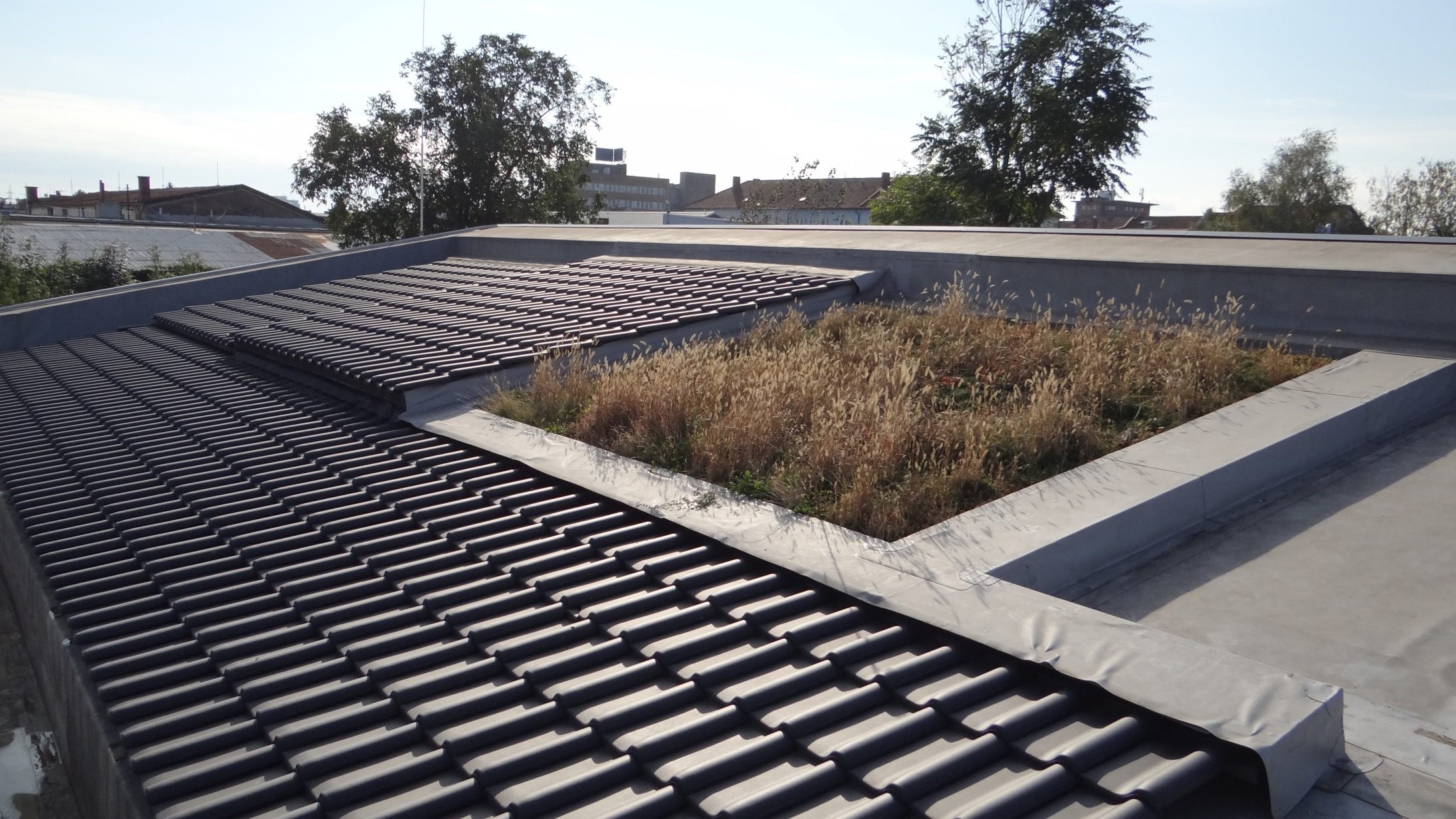 Jeden z významných projektů se týká vegetačních střech. Aktuálně máme nejvíce zastoupeny extenzivní střechy, které jsme realizovali jak na plochých, tak i šikmých plochách. Sledujeme zejména odtoky dešťové vody ze střech a stanovujeme součinitel odtoku – tedy poměr mezi množstvím srážek a vodou skutečně odtékající ze střechy. Tento parametr vyhodnocujeme pro jednotlivé dešťové události i v dlouhodobém ročním průměru.