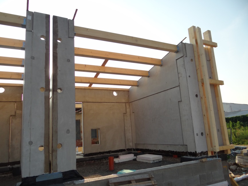 Experimentální budova je navržena částečně jako skeletový a částečně jako stěnový systém, ve kterém lze snadno měnit jednotlivé části vnitřních i vnějších stěn a střech.