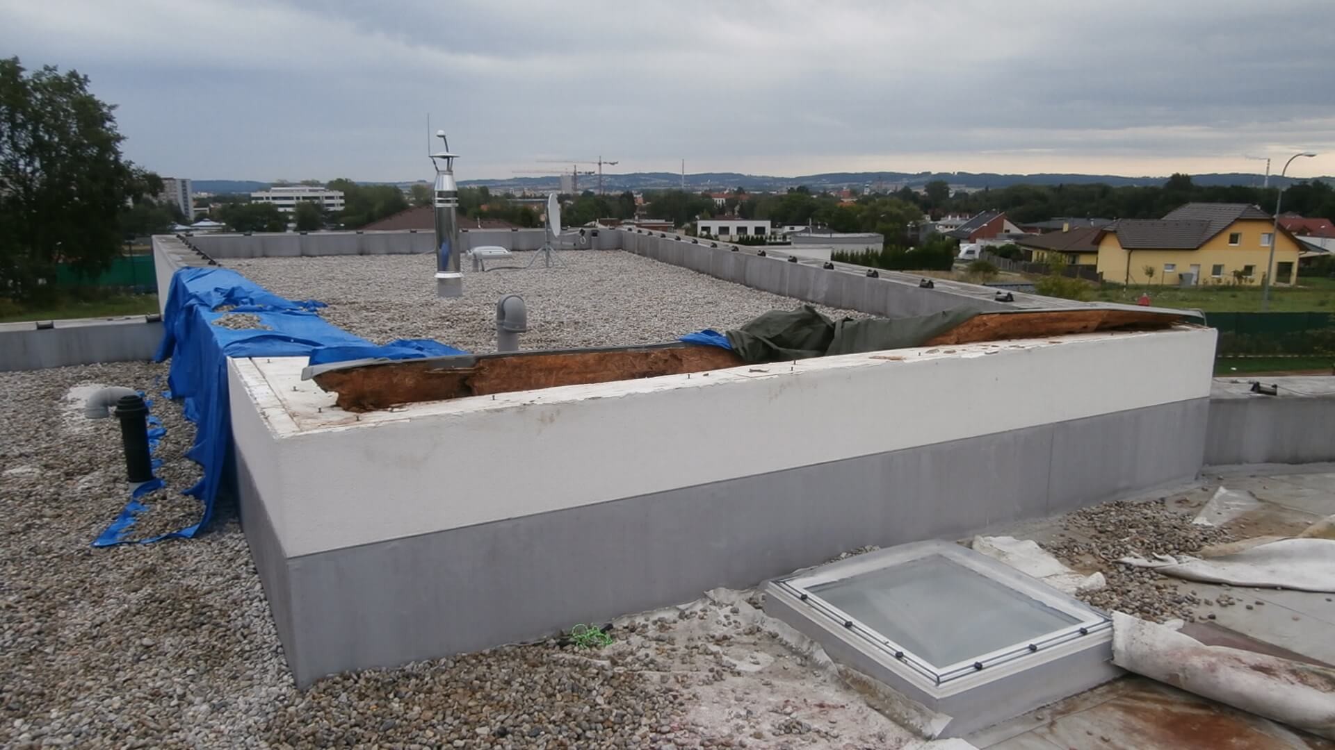 Řešení skladby střechy ani detailu atiky se nevymyká běžně realizované praxi.