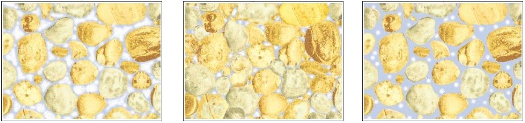 Průběh a výsledek hutnění závisí především na druhu zeminy, zrnitosti zeminy a obsahu vody v zemině. Vliv obsahu je na následujících schématech.