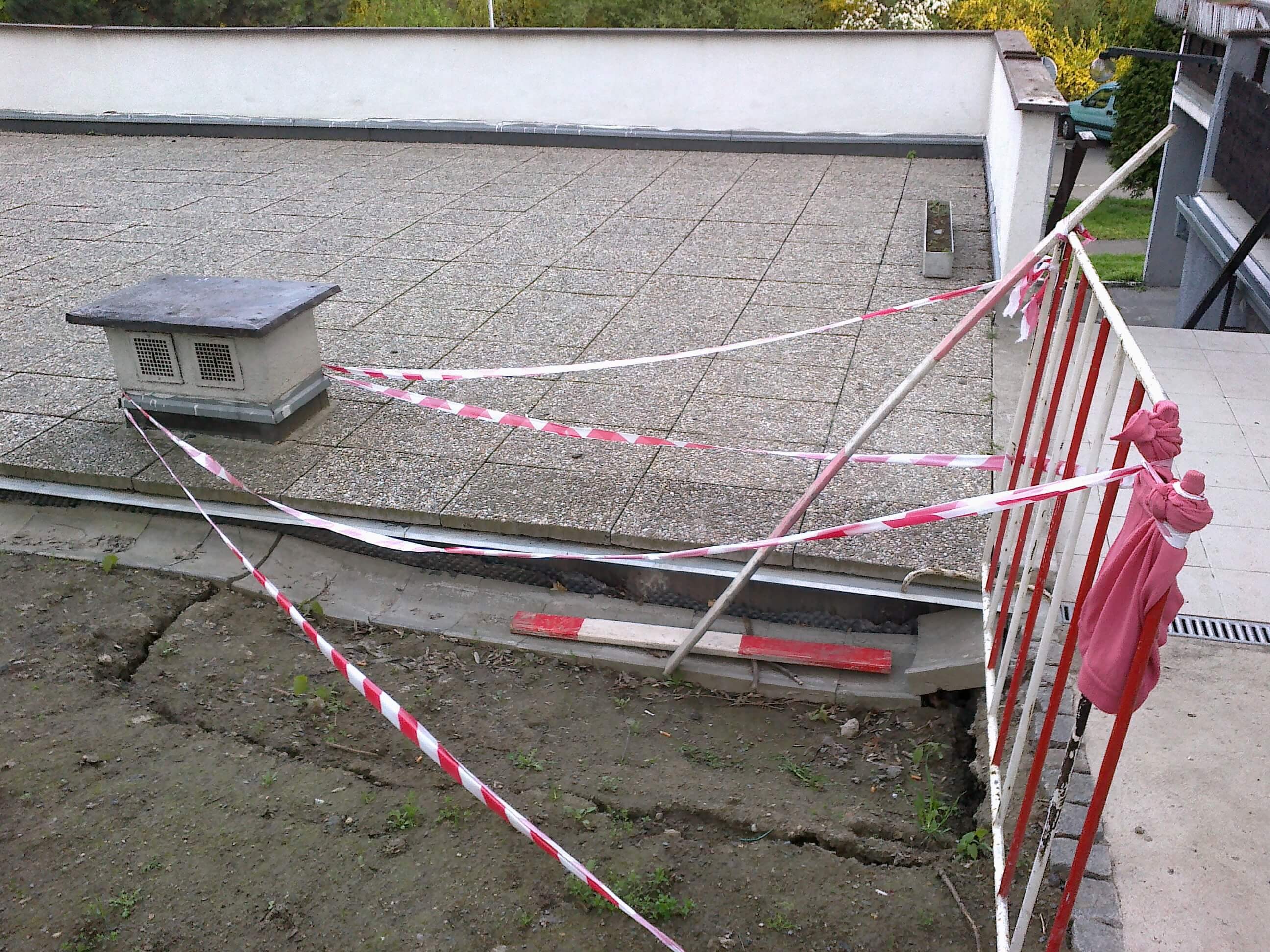 1 a 2 - Stěna garáží přilehlá ke svahu byla dodatečně izolována hydroizolačními asfaltovými pásy. Výkop byl hluboký asi 3 metry. Po provedení prací izolatérů, byl výkop zasypán původní zeminou. Po několika týdnech se část zásypu viditelně propadla a s ní i odvodňovací žlab. Realizační firma se musela vrátit na místo činu, oblast znovu vykopat, zasypat, zhutnit a znovu usadit betonové dílce žlabu.