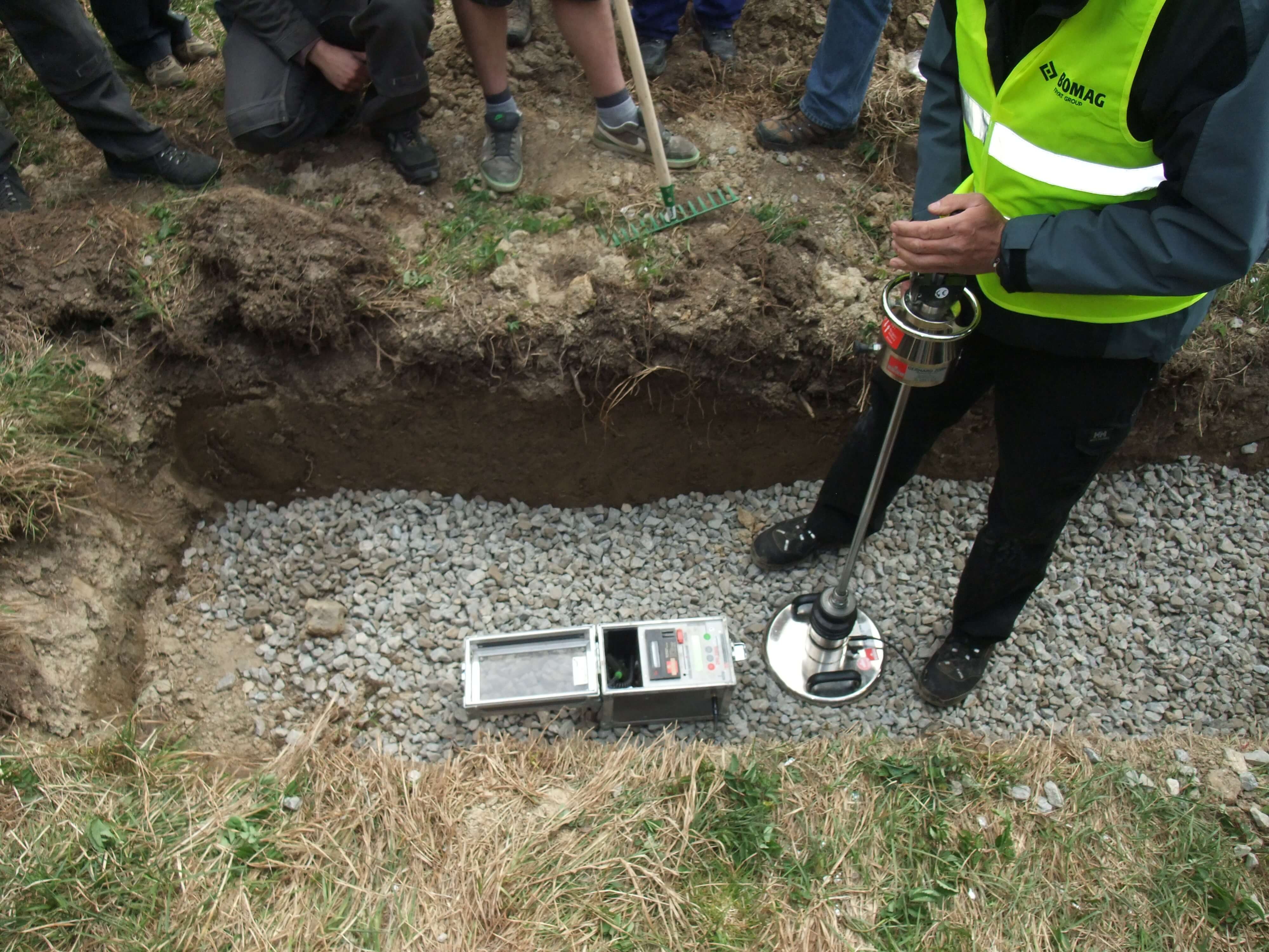 Míra a kontrola zhutnění Existuje několik typů polních zkoušek míry zhutnění zemin, založených buď na statickém, nebo dynamickém působení na zhutněnou zeminu. Jednotlivé typy zkoušek podrobně popisuje ČSN 72 1006. Výstupem těchto zkoušek je nejčastěji deformační modul podloží (N/mm), který se porovnává s hodnotou předepsanou v projektu. Ta je navržena podle charakteru provozu na finální konstrukci. V praxi se dále používají také radiometrické přístroje, které měří zhutnění zemin na základě měření objemové hmotnosti.