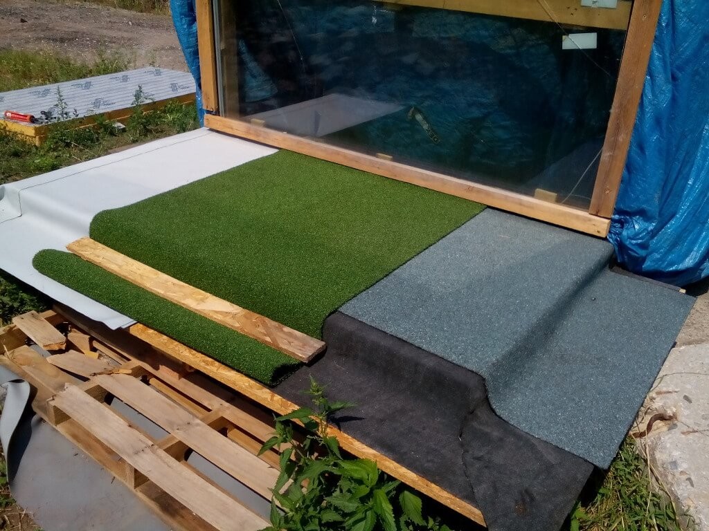 Měření na těchto dvou skladbách probíhalo do 5. srpna, kdy na polovinu obou hydroizolací byl položen travní koberec z umělé hmoty. V této části pokusu se měl ověřit vliv zvýšeného teplotního namáhání a následné degradace EPS po položení umělého trávníku na povrch střechy.