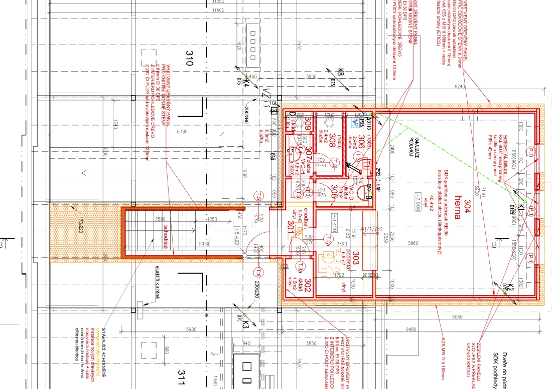 Projektant nástavby nás nechal nahlédnout i do požárně bezpečnostního řešení. Jak plyne z následujícího textu, požární vlastnosti dřevěných panelů byly plně vyhovující pro splnění požadavků plynoucích z toho, že objekt je zařazen dle vyhlášky 460/2021 Sb. do kategorie staveb II. Jedná se o stavby, ve kterých se nachází prostor určený pro osoby, jejichž evakuace při požáru je podmíněna asistencí dalších osob.