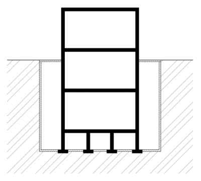 Meziprostor se provádí speciálním způsobem založení, kdy podlaha podzemního podlaží je provedena ve formě stropu a pod tímto stropem se vytvoří volný prostor. Je velmi výhodné, aby byl tento prostor průchozí nebo průlezný pro případnou kontrolu. V takovém případě lze meziprostor řešit jako snížené podlaží. Toto řešení je vhodné spíše pro větší skeletové stavby zakládané na patkách nebo pilotách, viz Obr.
