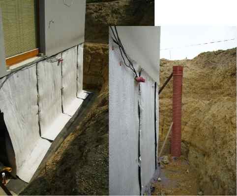 Provádí se obvykle z plastových profilovaných fólií nebo desek tak, aby se mezi objektem a přilehlým horninovým prostředím vytvořila spára odvodněná do plošného nebo liniového svodného drénu. Od horninového a půdního prostředí je oddělena textilní separační vrstvou.