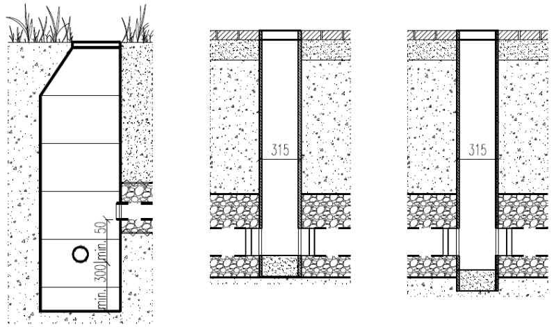 Obr. 19 Příklad čisticí šachtice, příklady kontrolní šachtice bez/s kalovým prostorem [4]