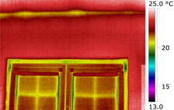 Obr. 4 – Příklad okna s anomáliemi v teplotním poli pouze za podtlaku v interiéru