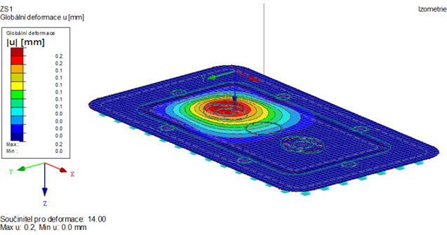 Univerzálnost testovacího zařízení nám nabízí možnosti pro flexibilní testování prototypů nově vyvíjených výrobků. Jedním z produktů nově zaváděných do sortimentu Stavebnin DEK je kotevní bod určený k fixaci nejrůznějšího příslušenství a vrstev na ploché a šikmé střechy s fóliovou hydroizolací (FVE panely, vrstvy vegetačních střech atd.). Široké spektrum typů předpokládaných instalací a variabilního příslušenství si vyžádá široké spektrum zkoušek. Na základě výsledků testů potom validujeme statické výpočtové modely (viz obr. 9, 10, 11).