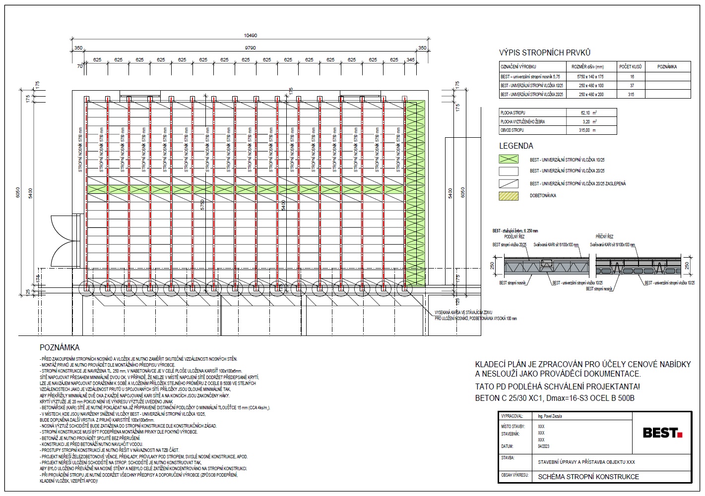 O3: Poptávku včetně výkresů v pdf případně dwg zašlete na email stropy@best.cz. Cenovou nabídku včetně kladecího plánu stropu obdržíte do pěti pracovních dnů.