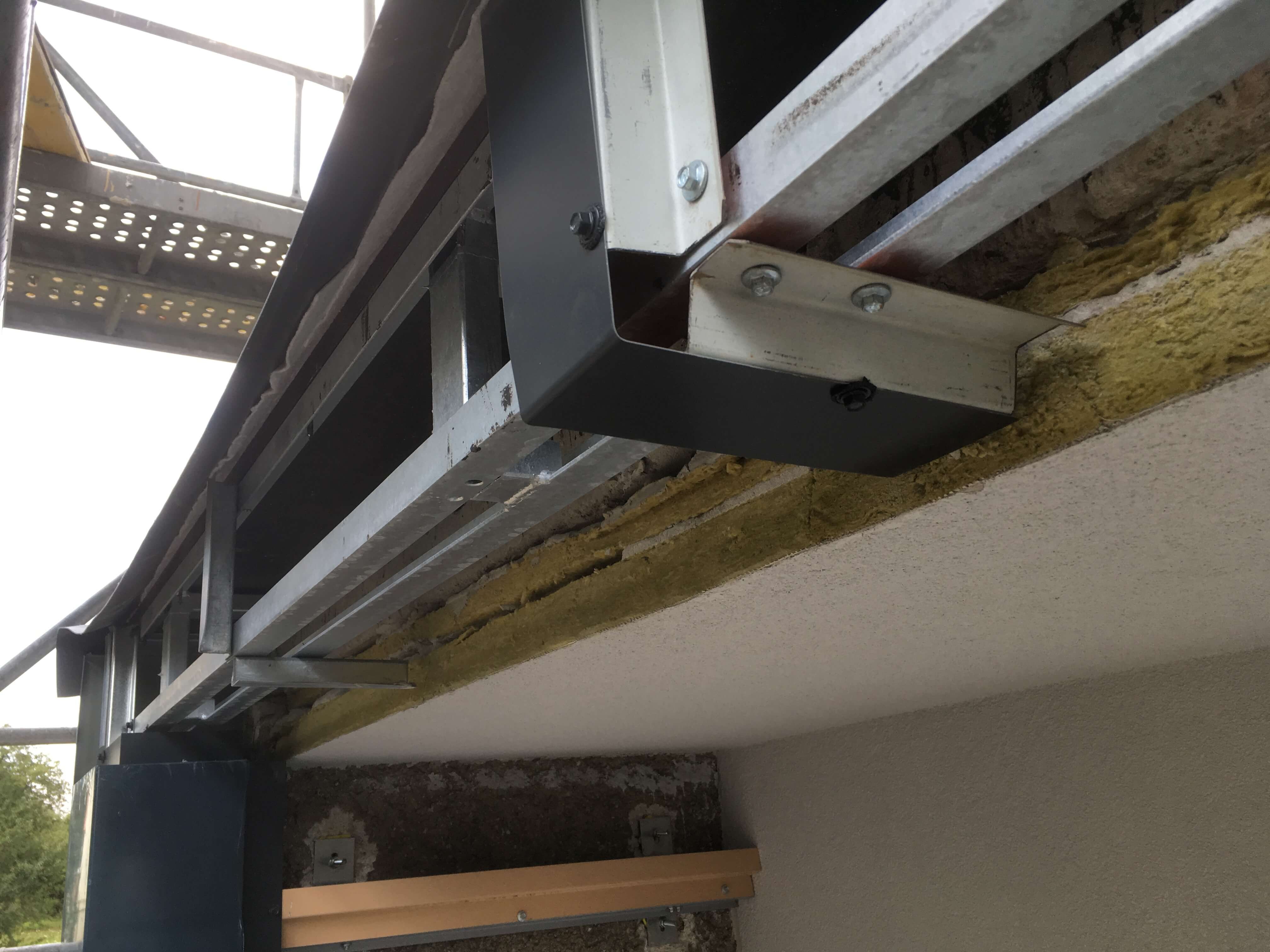 Řešení spočívalo ve vyložení okraje balkónů podpůrnou ocelovou konstrukcí. Ta sloužila jako podklad pro vysunuté zábradlí, pro skladbu podlahy lodžie a pro pohledový obklad z plechových kazet DEKMETAL. Architekt obklad s radostí využil ke zvýraznění původních, po patrech prostřídaných, bočních stěn balkónů na jedné z fasád.