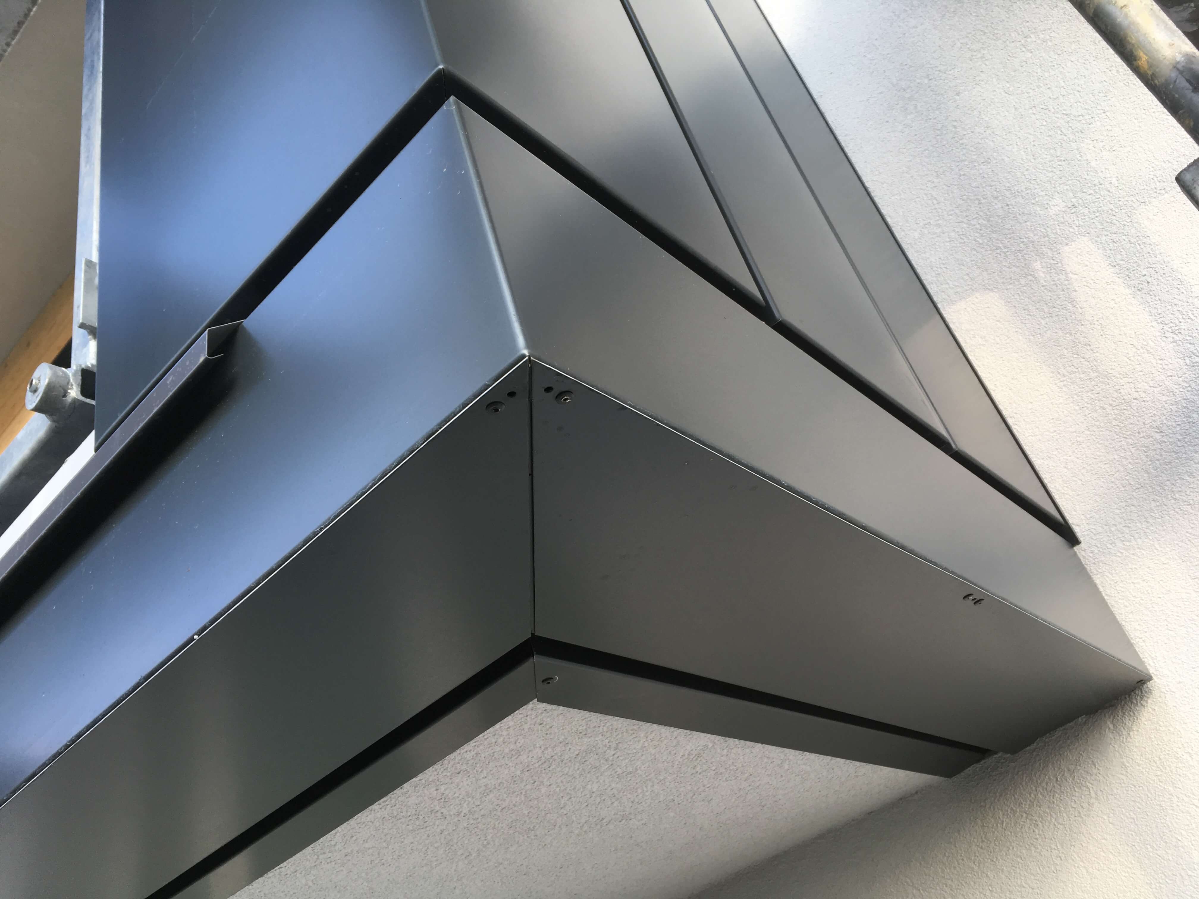 Obklad z plechových kazet: výroba - Dekmetal s.r.o. – Ing. Martin Bugner, montáž – Ing. Josef Müller