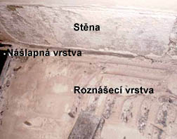 Měřením byla zjištěna kročejová neprůzvučnost mezi uvedenými místnostmi L´nT,w = 74 dB. Tato hodnota výrazně převyšuje požadovanou hodnotu L´nT,w = 58 dB (dle tehdy platné ČSN 73 0532:2000). Na základě výsledků měření byla provedena sonda, která odhalila, že roznášecí a nášlapná vrstva podlahy chodby nejsou pružně odděleny od navazující stěny (obr. 02).