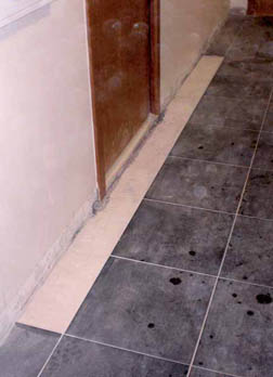 Pružný izolační pásek se vkládá také do spár roznášecí desky mezi dvěma místnostmi. V případě, kdy není spára mezi místnostmi provedena, bude mezi těmito místnostmi docházet k horizontálnímu přenosu kročejového zvuku přímo roznášecí deskou podlahy. Pokud je mezi dvěma místnostmi stanoven požadavek na kročejovou neprůzvučnost, je nutné vždy provést v podlahovém souvrství dilatační spáru zamezující přímému styku podlahových souvrství.