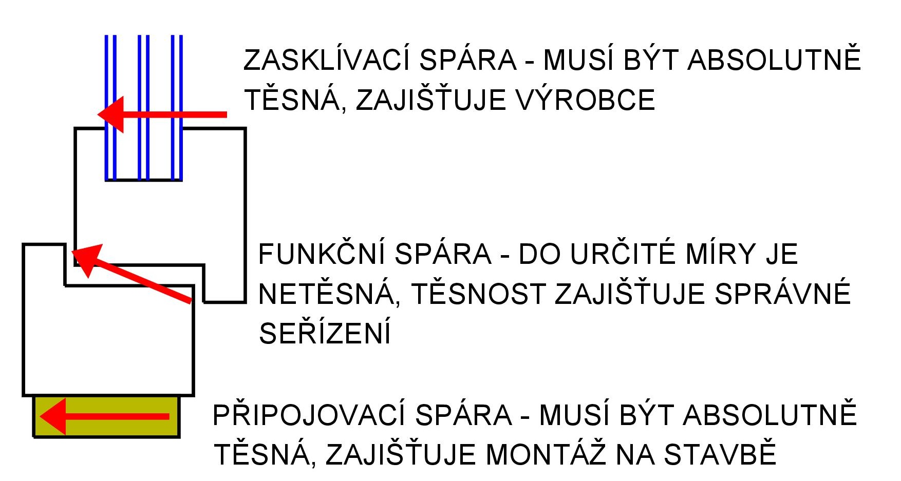 Netěsné funkční a zasklívací spáry oken s dostatečným součinitelem prostupu tepla