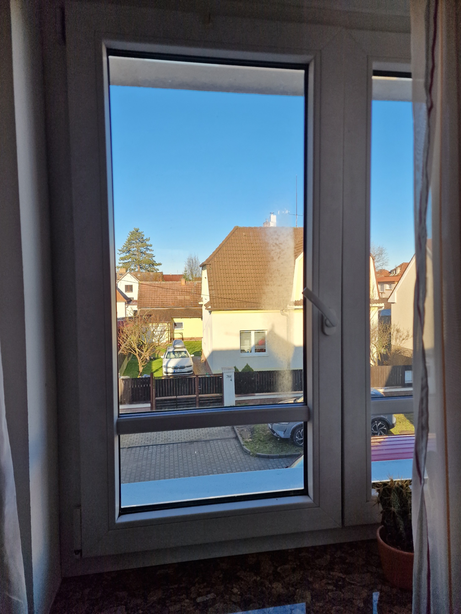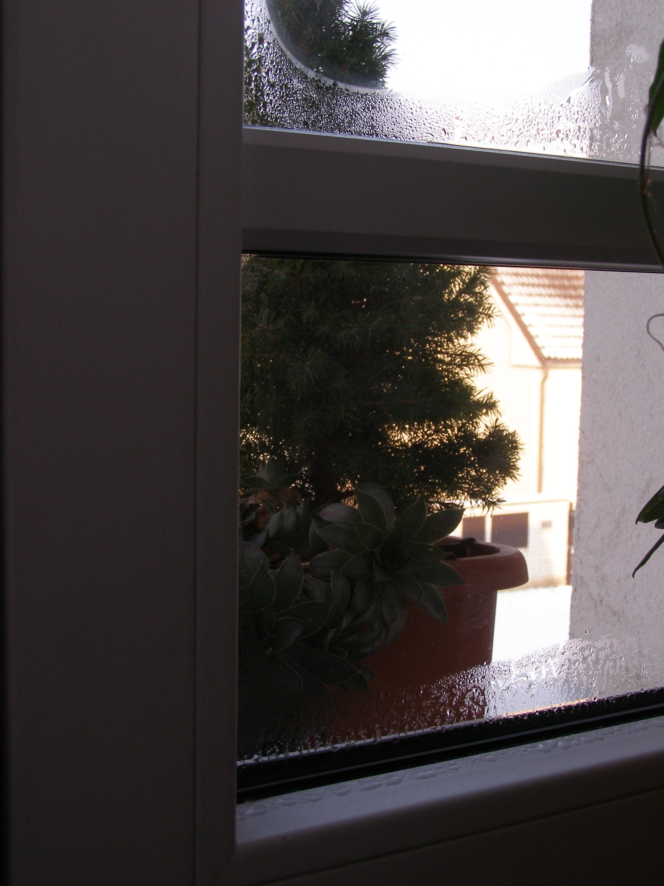 Kondenzace se v tomto případě vyskytuje jak na rámu okna, tak na zasklení, zejména blíže k parapetu. Směrem vzhůru bude kondenzace postupně mizet.