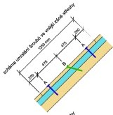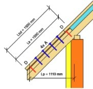 Krokve „po vlašsku“ jsou upevněny ve vzdálenosti cca 1,2 m do ocelové rámové konstrukce z HEB profilů (Foto 1 a 2). Aby bylo možné pro upevnění střešní skladby využít obvyklé zásady pro upevňování nadkrokevní skladby, bylo navrženo vložení příčných KVH hranolů („falešných krokví“) do spodní vrstvy tepelné izolace. Hranoly byly připevněny k vlašským krokvím. Kotvení se pak navrhovalo dle umístění stavby (větrová a sněhová oblast) s pomocí výpočetního postupu pro klasický systém TOPDEK. Bylo navrženo kotvení pomocí 2 kolmých a 1 šikmého vrutu (Obr. 4 a 5) na délku kontralatě 1,35 m (úsek kontralatě odpovídá šířce difuzní folie pokládané rovnoběžně s okapem). Firma dostala kompletní specifikaci upevňovacích prvků.