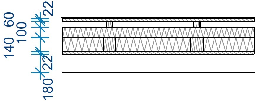 Na provedenou parozábranu se prováděla montáž příčné „krokve“ z KVH profilu. Rozteč těchto krokví byla zvolena dle rozměru PIR desky 800 mm (třetina z 2400 mm). Pomocí této krokve byl proveden i přesah střechy u okapu. Mezi příčné „krokve“ byla položena první vrstva tepelné izolace TOPDEK 022 PIR v tl. 140 mm (Foto 5). Následně byla provedena pokládka souvislé druhé vrstvy PIR v tl. 100 mm, rovnoběžně s okapem (Foto 6). Desky jsou spojovány na pero a drážku, malé netěsnosti jsou dopěněny nízkoexpanzní PU pěnou. Štítový přesah střechy je tvořen vysunutím OSB desky (Foto 7).
