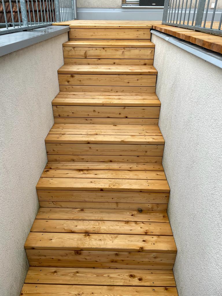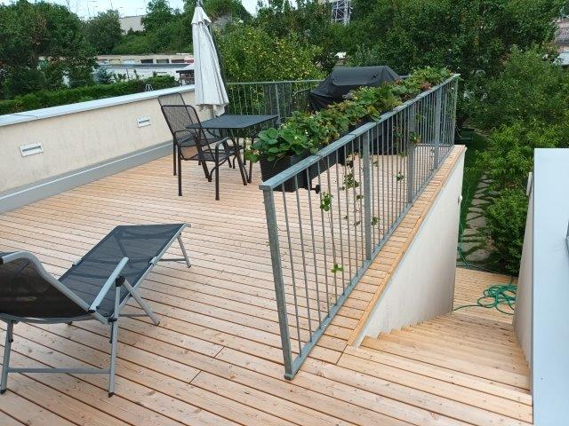 Pro rekonstrukci terasy byla zvolena jednoplášťová skladba odpovídající systémové skladbě DEKROOF 10-A, respektive ST. 3001A. Na požadavek investora byla opět provedena terasa z modřínových prken.