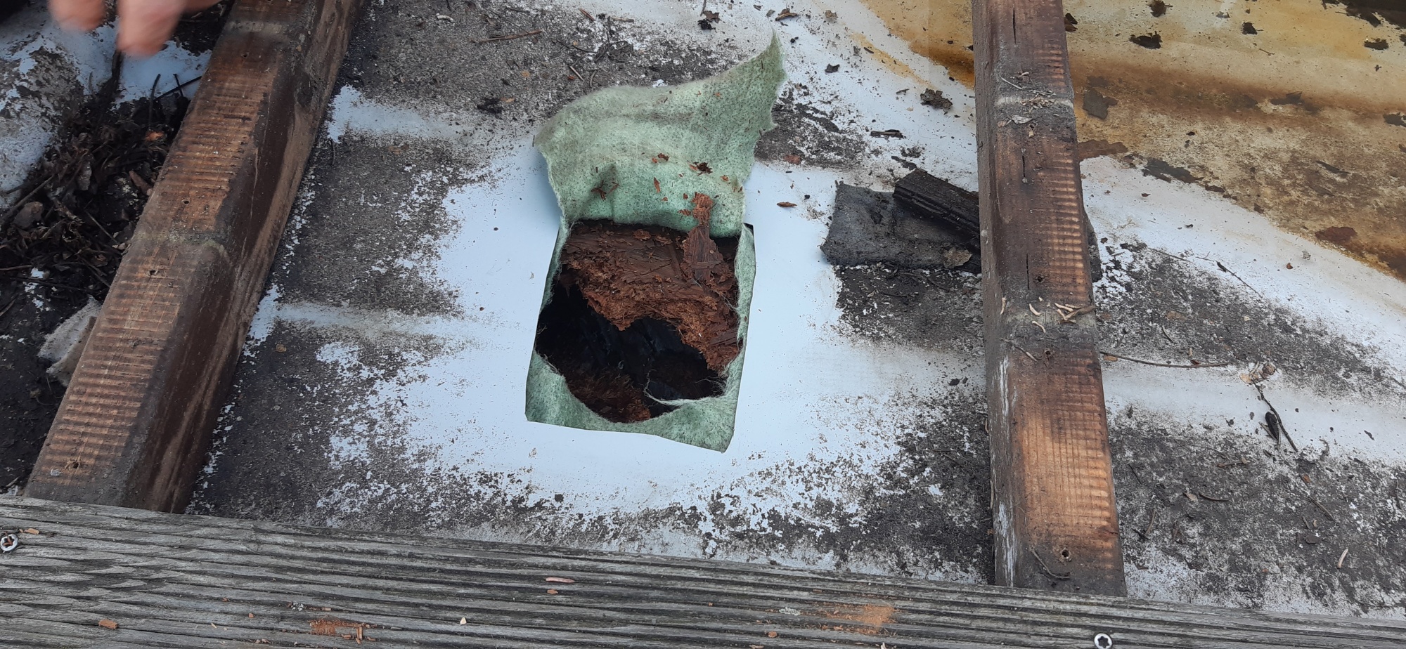 nevětraná vzduchová dutina vyplněná zbytky různých tepelných izolantů,