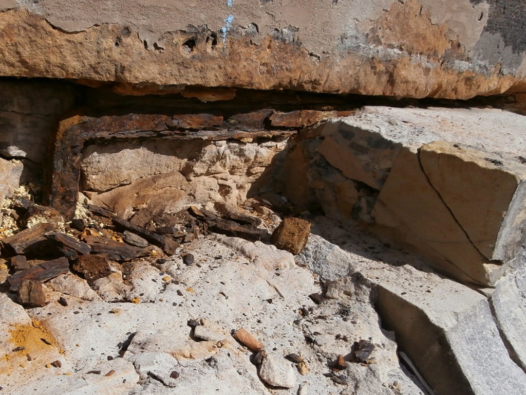 Oprava poruch korunní římsy způsobených korozí železných spon