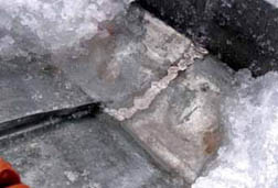 Velmi často se používá pro odvodnění římsového žlabu žlabové hrdlo napojené na dno žlabu. Tím pádem odpadní potrubí, do kterého je žlabové hrdlo zasunuto, prochází konstrukcí římsy. Promrzlá konstrukce římsy v období, kdy dojde k oblevě, se ohřívá se zpožděním. Tak může snadno dojít k zamrznutí hrdla v době, kdy má odvádět větší množství vody z právě tajícího sněhu na střeše.