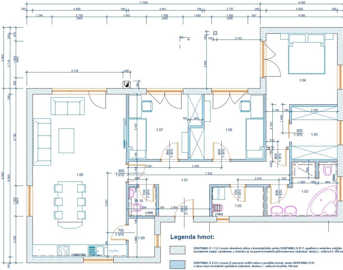 Příprava stavby byla zadána projektantovi, který se specializuje na projekty dřevostaveb ze systému 2by4 (lehké rámy z dřevěných hranolů opláštěných deskovým materiálem). Podle jeho předpokladu nepředstavoval projekt dřevostavby v systému DEKPANEL žádný zásadní problém. Naopak. Projektant měl k dispozici kompletní projektové podklady, jejichž součástí jsou technické parametry (tepelnětechnické, akustické, požární, statické apod.) a vzhledem k tomu, že montážní dokumentaci zajišťujeme v rámci servisu pro realizaci zdarma, byla projektová příprava o to jednodušší.