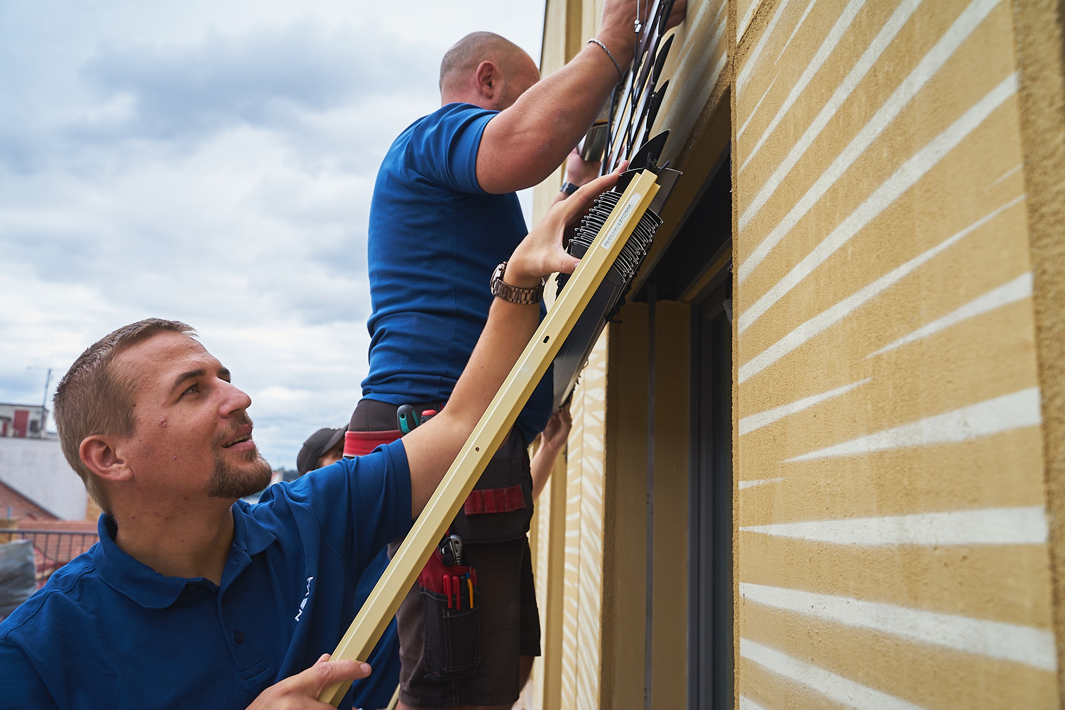 Montáž venkovních žaluzií je poměrně složitá a doporučujeme jí pověřit odbornou montážní firmu. Text dále v článku popisuje nejdůležitější kroky během montáže.