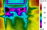 Zleva vždy civilní fotografie, termovizní snímek za přirozených podmínek a termovizní snímek při podtlaku v interiéru