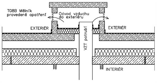 Letošní zima intenzivně prověřuje stavební konstrukce z hlediska tepelné techniky. Vlhkostní poruchy a prochládání konstrukcí způsobené tepelnými mosty a nežádoucím prouděním vzduchu konstrukcemi se projeví zejména při extrémně nízkých teplotách. Zjišťujeme, že takových vad je jako máku. Jako jeden z desítek případů, řešených od začátku roku 2006, jsme vybrali vlhkostní problémy v posledním nadzemním podlaží bytového domu T06B s větranou1 dvouplášťovou střechou a s tlumicími komorami na střeše, ukončujícími ventilační a kanalizační potrubí. Především v zimním období při oteplení po dlouhých mrazech docházelo k zatékání do bytů v místě spár stropních panelů a spár mezi stropními a stěnovými panely. Podobné problémy obvykle řeší uživatelé nebo majitelé domů provedením nové hydroizolace střechy, případně zateplením strojoven výtahů, apod. Charakter zatékání a konstrukce domu napovídaly na nám již známou vadu tlumicích komor, kterou jsme úspěšně řešili a publikovali v minulých letech.