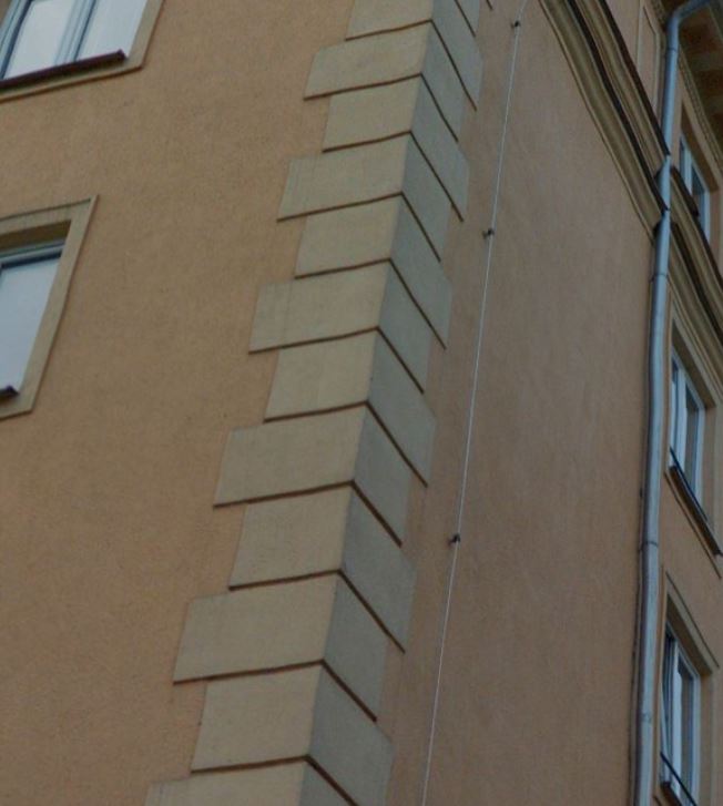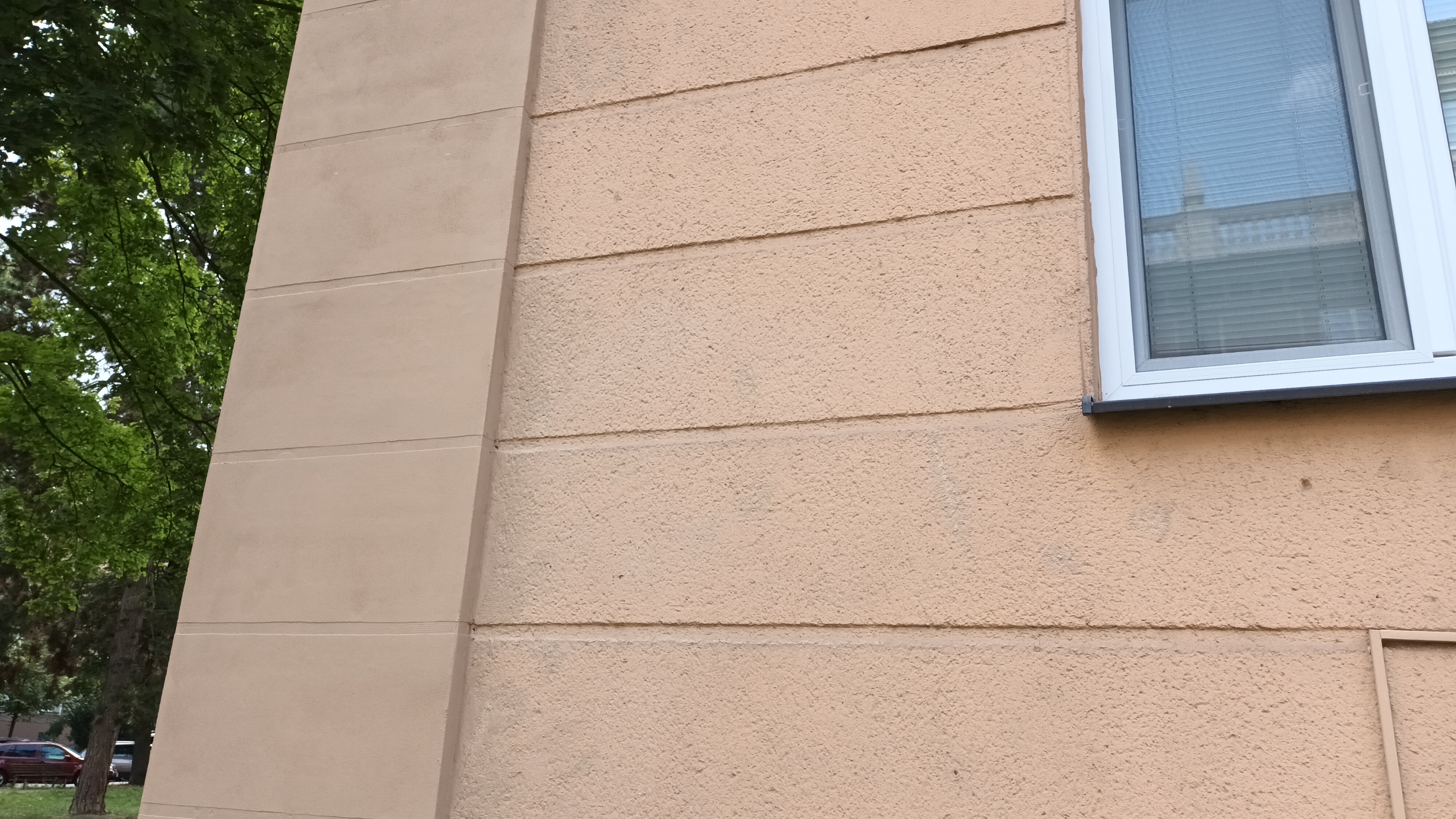 Aby byl vzhled objektu co nejvíce zachován a lokální zateplení rohů objektu nebylo příliš vystouplé před líc fasády, byla na rozích budovy odstraněna původní omítka až na cihelné zdivo v šířce cca 850 mm na každou stranu. Zdivo bylo očištěno a srovnáno hrubou jádrovou omítkou. Na takto upravený podklad se následně aplikoval zateplovací systém.