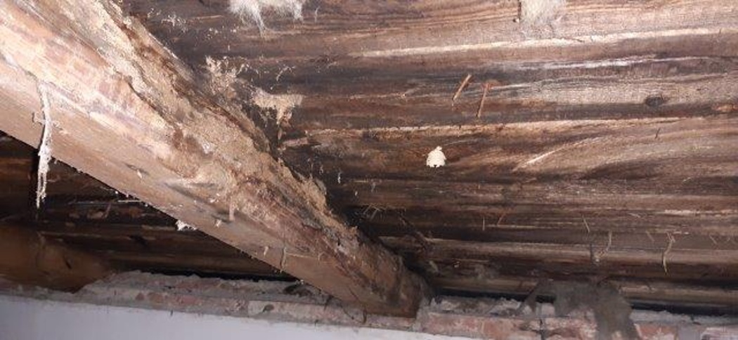 V podstřešních pokojích nebyly pozorovány žádné poruchy, dokud střecha neulétla. K odtržení plechové krytiny došlo, protože podkladní bednění, do kterého byla krytina připevněná, bylo shnilé.