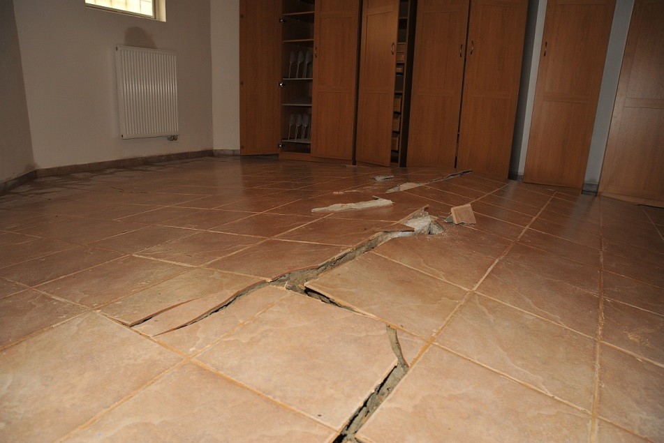 Obr. 18 - Deformace vrstev podlahy vztlakem vody proniklé do zásypu stavební jámy