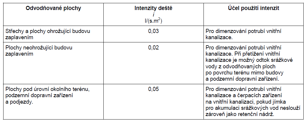 Pro navrhování vsakovacích zařízení srážkových vod se dle [5] používá místo intenzity deště i [