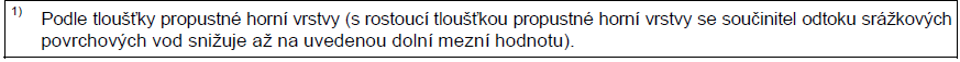 ] ………... půdorysný průmět odvodňované plochy nebo účinná plocha střechy podle [8];V literaturách se do výpočtů používají různá značení a hodnoty součinitelů odtoku, stanovené pro potřeby konkrétní aplikace: