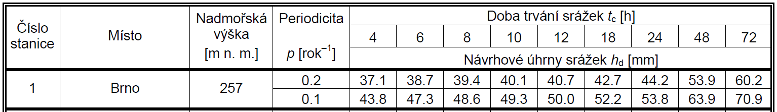 ] návrhový úhrn srážek hd [mm] pro různé doby trvání. Příklad pro Brno je uveden na Obr. 2.