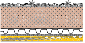 Stanovení správného množství vody odtékající vnitřní kanalizací nebo stanovení množství přitékající vody do vsakovacího zařízení je náročný úkol a je vždy nutné tyto činnosti spojit do uceleného koncepčního návrhu celého systému nakládání s dešťovou vodou. To se týká také i případného drenážního systému pro snížení namáhání spodní stavby vodou. V praxi jsme se setkali s případem nevhodně navrženého odvodnění drenážního systému do nevhodně navrženého vsakovacího zařízení. Při vydatných srážkách došlo postupně k naplnění vsakovacího zařízení, zpětnému zaplavení drenážního systému, který má paradoxně vodu odvádět, k zaplavení propustných a drenážních vrstev po obvodu objektu a pod objektem a následně ke vzdutí podlah tlakem vody, včetně rozvodů v nich umístěných, viz Obr. 18.