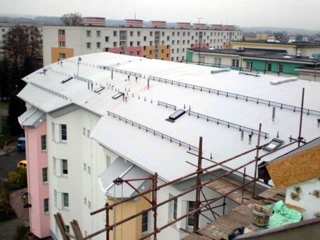 Nová skladba střechy při rekonstrukci v roce 2007 byla řešena jako jednoplášťová s povlakem pokládaným na tepelněizolační vrstvu: